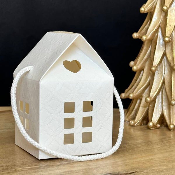La boule personnalisée sera livrée dans une belle boîte cadeau en forme de maison. Cette jolie maisonnette en carton peut servir aussi de décoration avec une bougie LED non fournie.